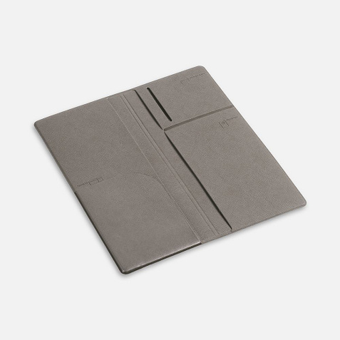Органайзер из искусственного материала, имитирующего сафьяновую кожу, имеет 5 отделений: для билетов, паспорта, визиток или кредитных карт.