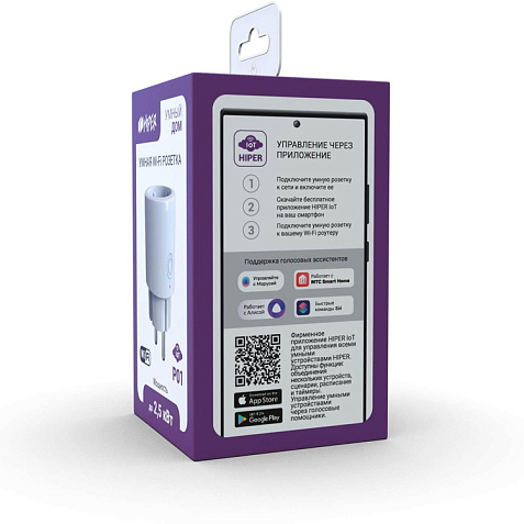 Умная розетка HIPER IoT P01 предназначена для удаленного включения/выключения электроприборов, а также для поддержки исполняемых сценариев. К ключевым особенностям модели можно отнести: • Поддержка голосовых помощников Яндекс Алиса и Google Home. • Управлять включением/выключением данной розетки возможно, как при помощи умных колонок, так и через голосовые помощники на телефоне или планшете. • Простота установки и настройки. Чтобы установить эту розетку, не нужно быть электриком, достаточно ее воткнуть в действующую розетку и настроить в соответствии с инструкцией. • Удобство настройки сценариев HIPER IoT. Простая и интуитивно понятная настройка сценариев. • Поддержка облачных технологий. Благодаря облачным технологиям устройства умного дома от HIPER, могут работать полностью автономно (без управляющих модулей), достаточно лишь подключить устройство к приложению и обеспечить доступ к Wi-Fi и Internet. • Безопасность и дистанционное включение/отключение. Для удаленного выключения/включения необходимо обеспечить подключение розетки к WiFi и смартфона/планшета к интернету, теперь по дороге на работу, не нужно переживать отключили ли вы утюг, достаточно зайти в приложение, проверить, и при необходимости выключить. • Управление по расписанию. В соответствующем разделе приложения розетку можно включать и выключать, в том числе по таймеру обратного отсчета и по расписанию. • Сохранение настроек при выключении электроэнергии. При включении-отключении от сети розетка восстанавливает последнее состояние — если они были выключены, то выключенными и останутся.