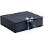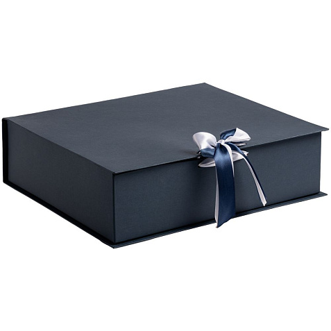 Коробка выполнена из переплетного картона, кашированного дизайнерской бумагой Malmero, с крышкой на лентах.