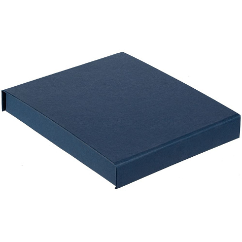 Коробка выполнена из переплетного картона, кашированного гладкой дизайнерской бумагой Malmero «Темно-синий», с крышкой на магните.