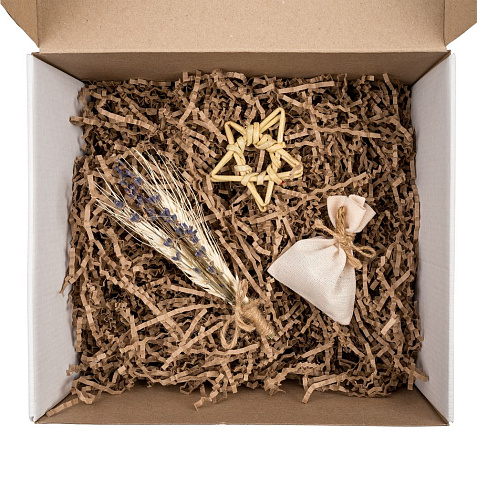 Коробка с наполнителем, шубером, открыткой и милыми украшениями Adorno — готовое решение для упаковки личного и корпоративного подарка.
