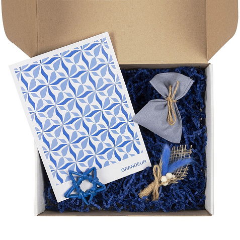 Коробка с наполнителем, шубером, открыткой и милыми украшениями Adorno — готовое решение для упаковки личного и корпоративного подарка.