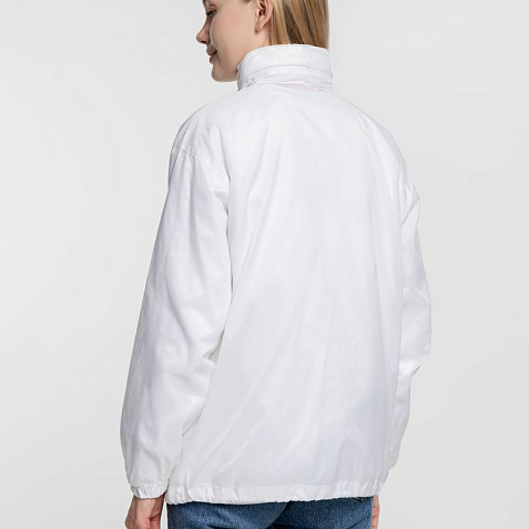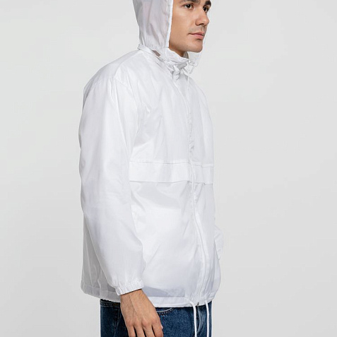 - Карман куртки служит сумочкой для нее: при необходимости ветровку можно компактно сложить, застегнуть карман на молнию и использовать пришитую эластичную тесьму, чтобы носить сложенную ветровку с собой на поясе