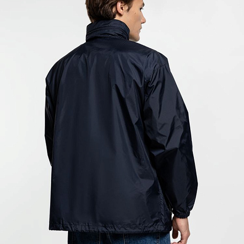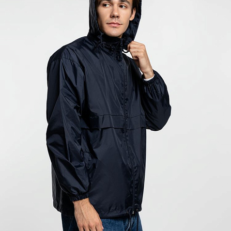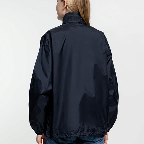 - Карман куртки служит сумочкой для нее: при необходимости ветровку можно компактно сложить, застегнуть карман на молнию и использовать пришитую эластичную тесьму, чтобы носить сложенную ветровку с собой на поясе