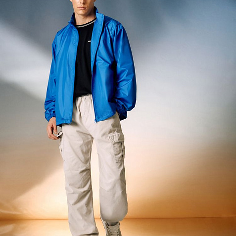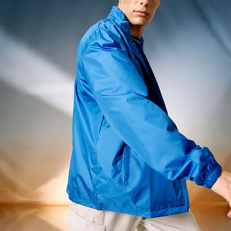 Тонкая гладкая ткань дюспо с притягательным матовым блеском почти бесшумна в использовании и пригодна для большого количества цветов печати. Качественный пошив ветровки добавляет ей презентабельности и гарантирует долгое использование, а яркий цвет привлекает внимание и не выгорает со временем.