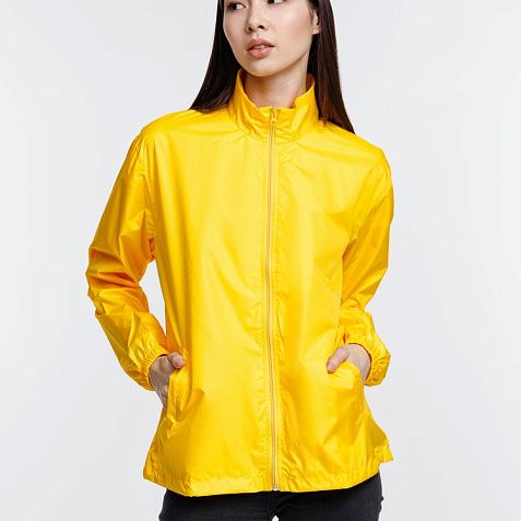 Тонкая гладкая ткань дюспо с притягательным матовым блеском почти бесшумна в использовании и пригодна для большого количества цветов печати. Качественный пошив ветровки добавляет ей презентабельности и гарантирует долгое использование, а яркий цвет привлекает внимание и не выгорает со временем.