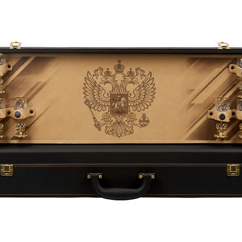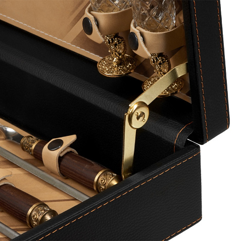 Кейс из сплит-кожи, с повышенной износостойкостью, внутренняя отделка натуральная кожа. Рисунок нанесен путем термообработки. В комплект входит: Шампур - 6 шт. Стопка 30 мл - 6 шт. УФ-печать (УФ-печать цветные изделия) на данный товар осуществляется бесплатно. Оплачивается только настройка оборудования в размере 2700 рублей на весь тираж.