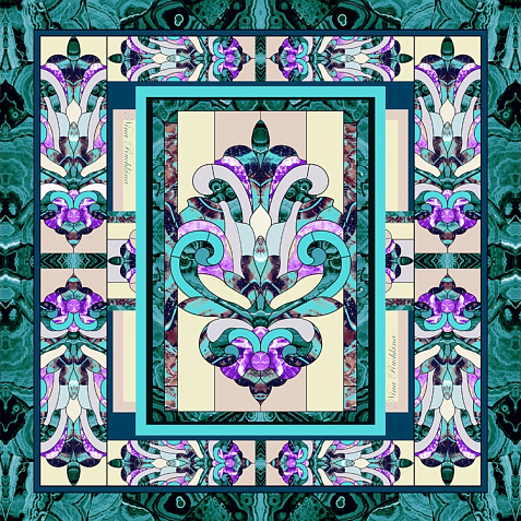 Это - первый дизайн из коллекции, посвященной Уралу. Каменный Цветок содержит в себе и малахит, аметист и другие кристаллы. Он символизирует богатство, щедрость природы Урала, соотносится с известным сказом Бажова о Каменном Цветке как о символе творческого поиска и совершенства.