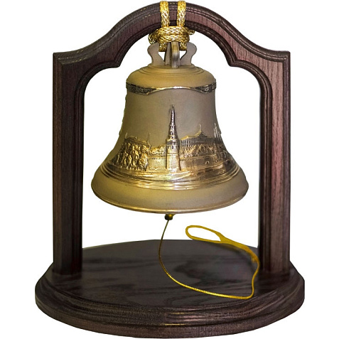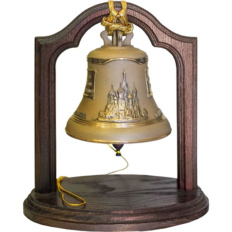 Колокол сувенирный весом 1кг Всея Руси на дубовой подставке. Поверхность колокола черненая с вызолочением. Настольные колокола делают те же производства, что льют и большие колокола для российских церквей. Поэтому они и звучат тем неповторимым малиновым звоном, который всегда ценился в отечественных колоколах. Настольный колокол - это ни только прекрасная интерьерная композиция, но и просто живая” частичка России. Ударьте в него, закройте глаза и слушайте, слушайте... Шильд спектрум (Шильд спектрум) на данный товар осуществляется бесплатно. Оплачивается только настройка оборудования в размере 1100 рублей на весь тираж.