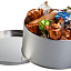 Преимущество плотной жестяной коробочки в том, что ее используют и после того, как подарок распакован — для хранения всяких необходимых в быту мелочей. Таким образом жестяная упаковка с логотипом всегда будет перед глазами ее получателя.