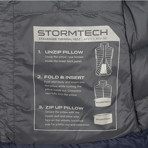 Эргономичный и ультралегкий жилет складывается в карман, расположенный внутри на спинке, и превращается в дорожную подушку.