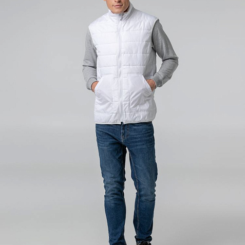 Утепленный стеганый жилет унисекс из ткани дюспо, которая считается лучшим современным материалом для изготовления курток, ветровок и плащей. Это прочный материал из полимерных волокон с защитной пропиткой, который не впитывает влагу и обеспечивает хорошую циркуляцию воздуха.