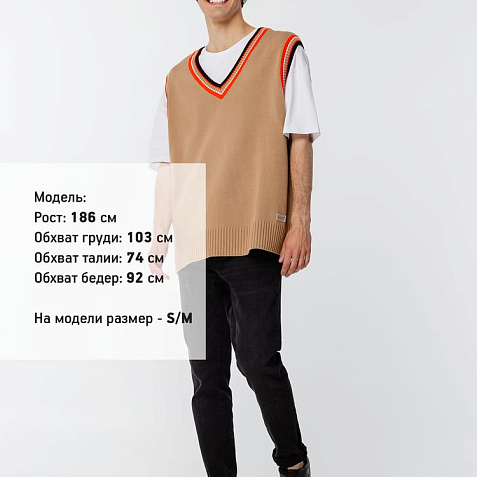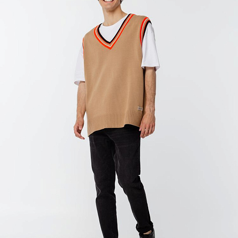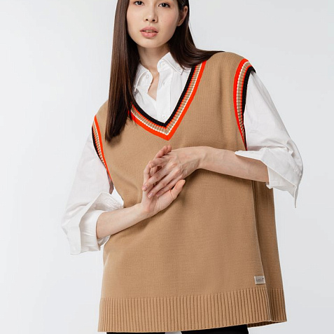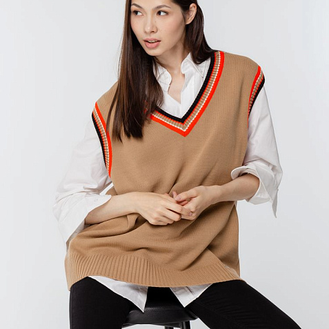 Оверсайз жилет с V-образным вырезом и цветной отделкой.