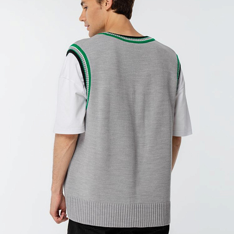Оверсайз жилет с V-образным вырезом и цветной отделкой.