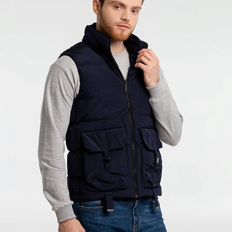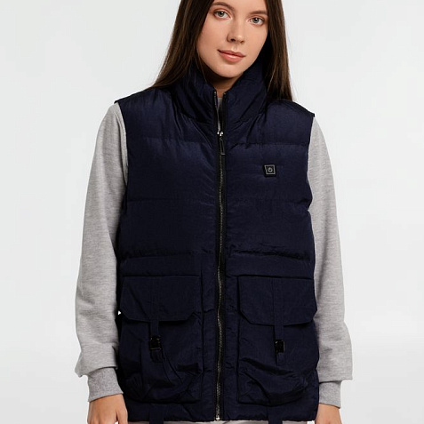 • Утепленный жилет на молнии с воротником стойкой и 2 наружными карманами