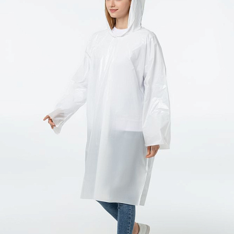 Дождевик-плащ с капюшоном и длинными рукавами из полиэтилена высокого давления (ПВД).