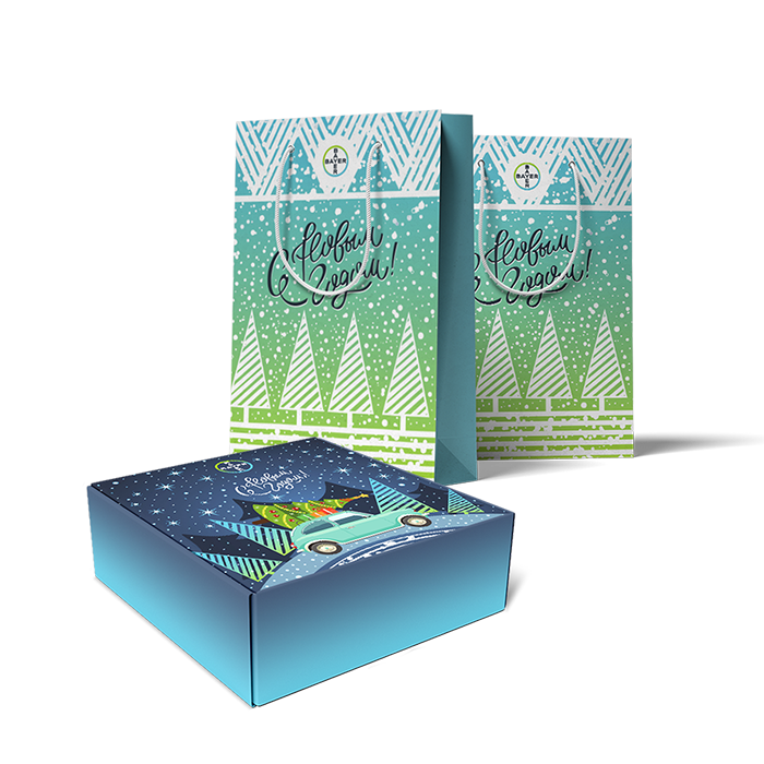 Для корпоративных подарков к Новому году мы разработали дизайн упаковки в фирменном стиле и подобрали функциональные предметы для нанесения логотипа.