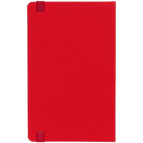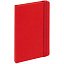 Блокнот в твердой обложке, выполнен из материала Soft Touch Ultra, красный РР, дополнен резинкой и ляссе в цвет обложки.
