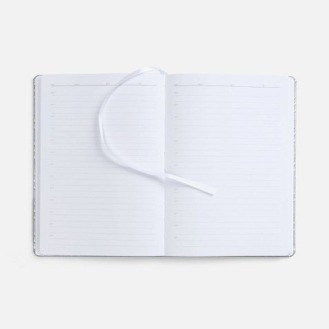 Ежедневник с твердой обложкой, выполнен из материала Waltz, серебро.