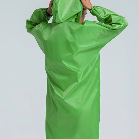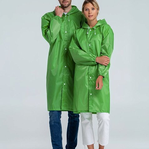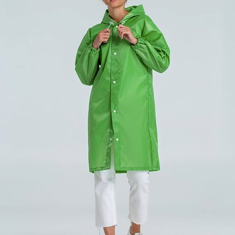 Плащ-дождевик из ткани оксфорд на кнопках с капюшоном.