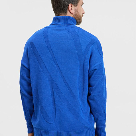 Модель: однотонный гладкий свитер унисекс, спущенное плечо, крупная петля. Чередуя различные типы петель на гладком полотне, можно вывязать любую графику: логотип, текст, товарный знак. Ворот, манжеты и низ изделия вывязаны резинкой.