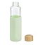 Бутылка со стеклянной колбой и крышкой из бамбука — изящное решение для тех, кто предпочитает природные материалы. Яркий силиконовый чехол защищает колбу от повреждений.
