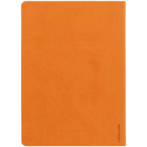Ежедневник с твердой обложкой, выполнен из материала Latte, оранжевый ОО, дополнен ляссе в цвет обложки.