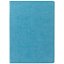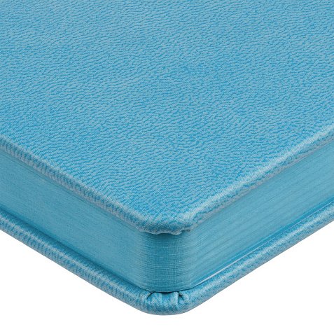 Ежедневник с твердой обложкой и тонированным обрезом. Выполнен из материала Latte, голубой, дополнен ляссе в цвет обложки.