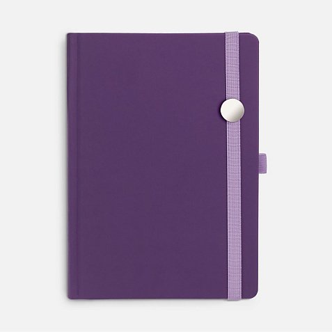 Ежедневник с твердой обложкой без поролона, выполнен из материала Soft Touch, фиолетовый UU, дополнен резинкой шириной 1 см, петлей-резинкой для ручки, капталом и ляссе в цвет обложки.