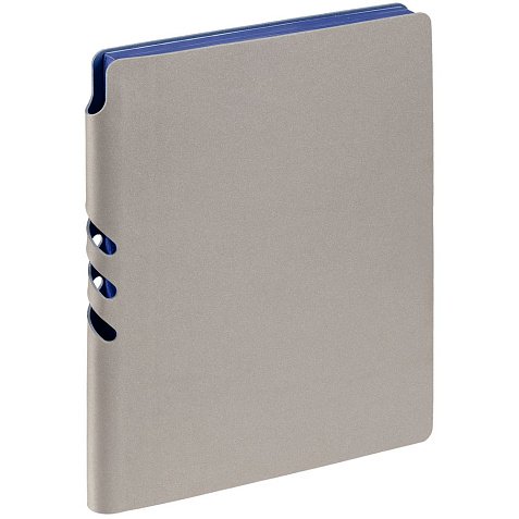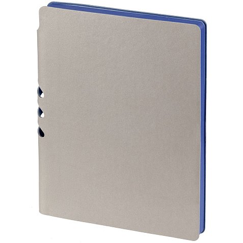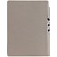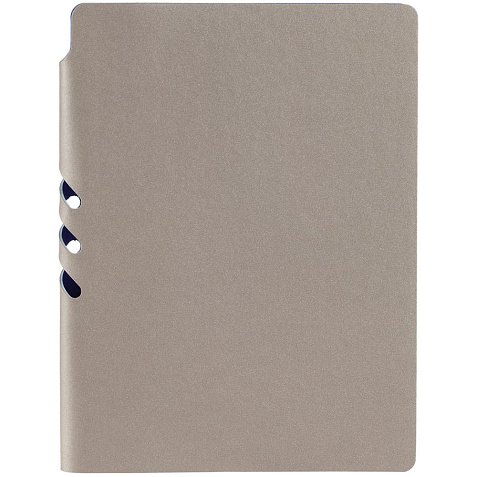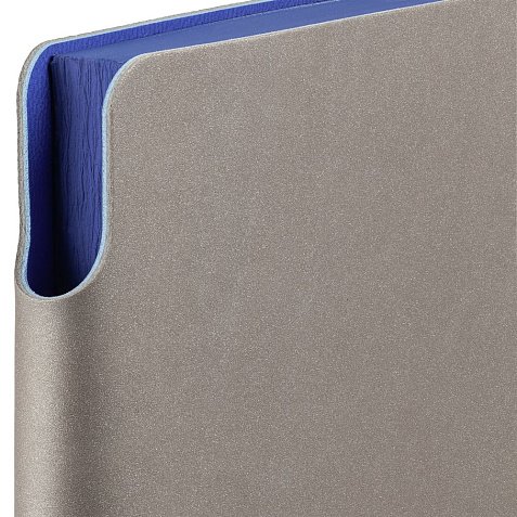Гибкая обложка выполнена из материала Velour Melange, серый СС и Latte, синий НН (внутренняя часть обложки). Внутри корешка — специальное место для крепления ручки размером до 15х0,9 см.