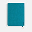 Ежедневник с гибкой обложкой, выполнен из материал La Fite, цвет морской волны II, дополнен ляссе в цвет обложки с металлическим шильдом.