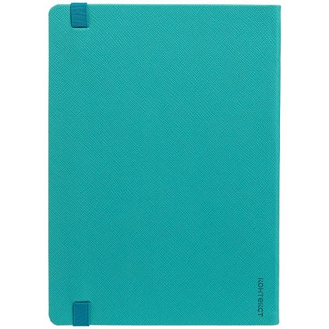 Ежедневник с полутвердой обложкой выполнен из материала Nice Touch, морская волна II, и дополнен резинкой шириной 1 см с металлическим шильдом и ляссе в цвет обложки.