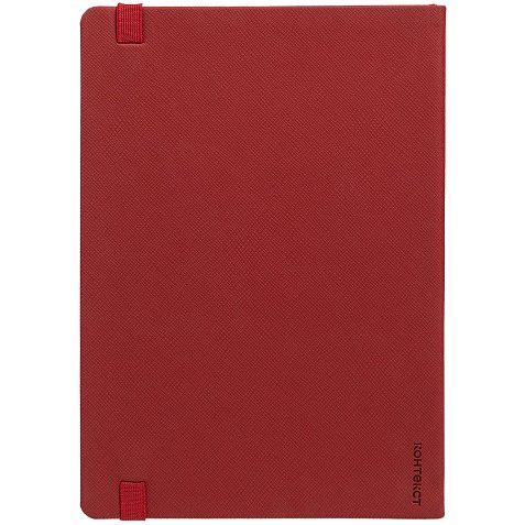 Ежедневник с полутвердойобложкой выполнен из материала Nice Touch, красный PP, и дополнен резинкой шириной 1 см с металлическим шильдом и ляссе красного цвета.