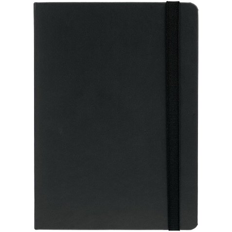 Ежедневник с твердой обложкой, выполнен из материала Latte, черный АА, обрез черного цвета, дополнен резинкой и ляссе черного цвета.