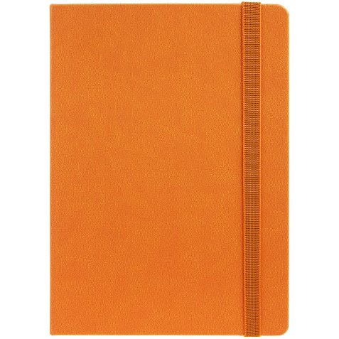 Ежедневник с твердой обложкой, выполнен из материала Latte, оранжевый ОО, обрез оранжевого цвета, дополнен резинкой и ляссе оранжевого цвета.