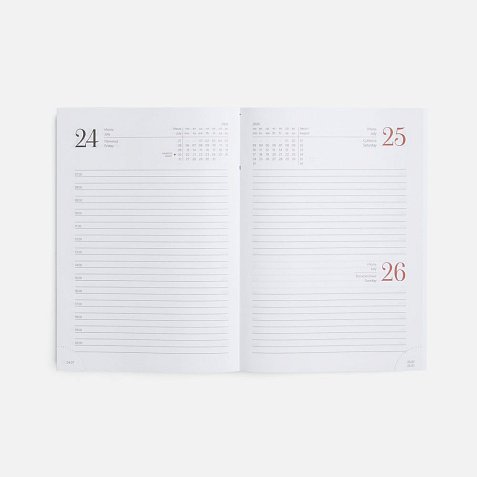 Ежедневник с твердой обложкой без поролона, выполнен из материала Nebraska, красный PP, дополнен ляссе и капталом в цвет обложки.