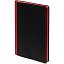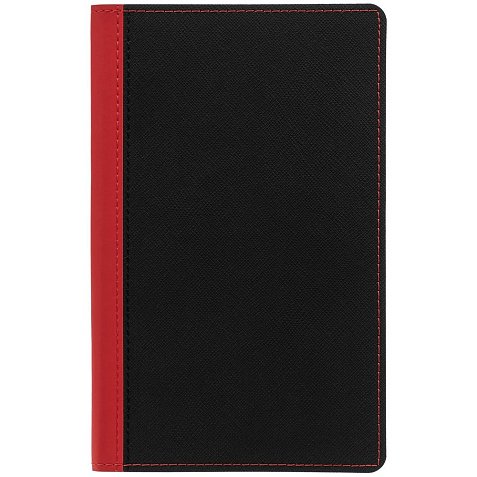 Ежедневник с гибкой обложкой выполнен из материала Nice Touch, черный АА и Soft Touch Ultra, красный РР, дополнен ляссе красного цвета.