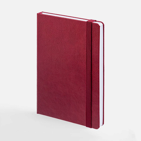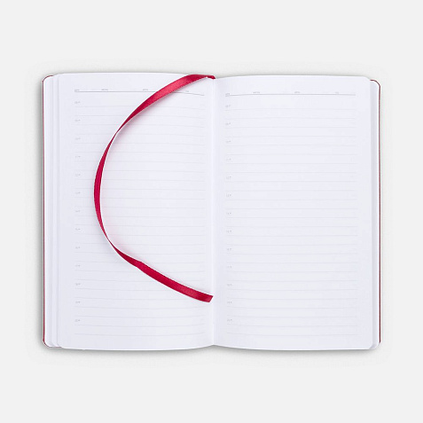 Ежедневник с твердой обложкой, выполнен из материала LaFite, красный РР, дополнен резинкой и ляссе в цвет обложки.