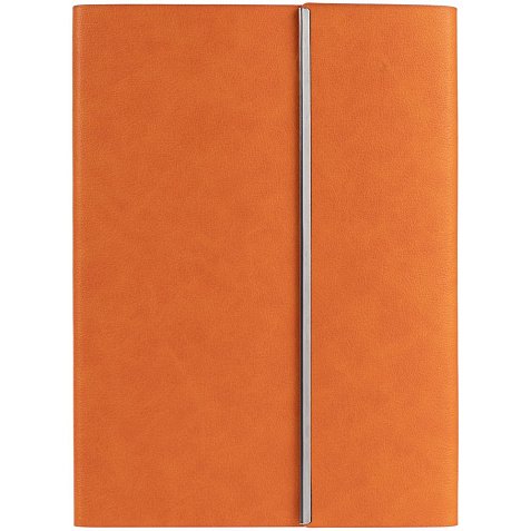 Ежедневник с гибкой обложкой, клапаном на магните и металлической отделкой клапана. Выполнен из материала Petrus, оранжевый ОО, дополнен серым ляссе.