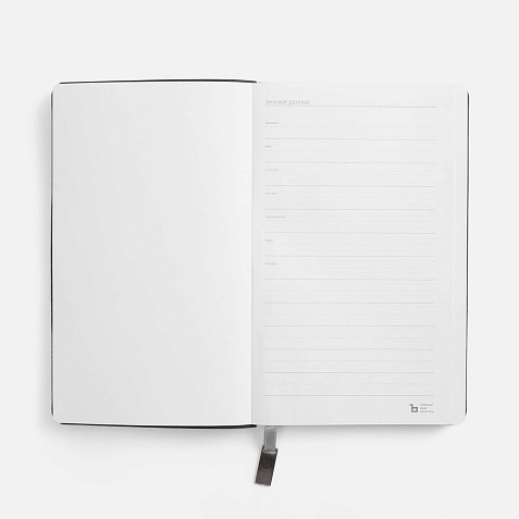 Ежедневник с гибкой обложкой, выполнен из материала Petrus, серый СС, дополнен серым ляссе с металлическим шильдиком.