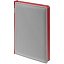 Твердая обложка с поролоном, материал обложки — Soft Touch, серый СС и Soft Touch Ultra, красный PP. На корешке ежедневника находится петля из резинки.