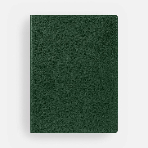 Ежедневник в суперобложке выполнен из материала La Fite, зеленый FF, дополнен ляссе и капталом черного цвета.