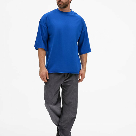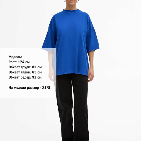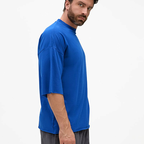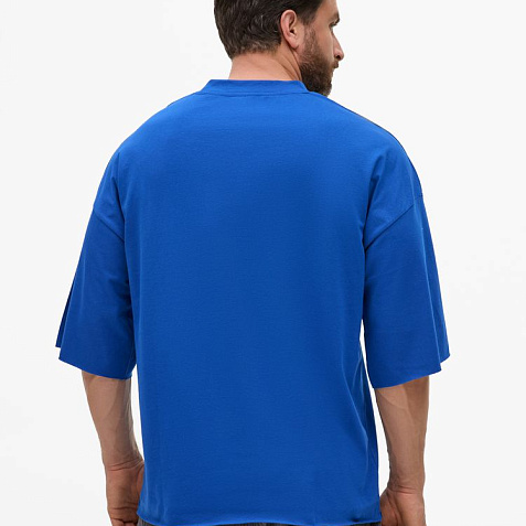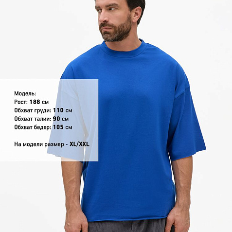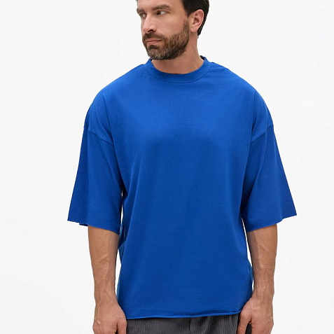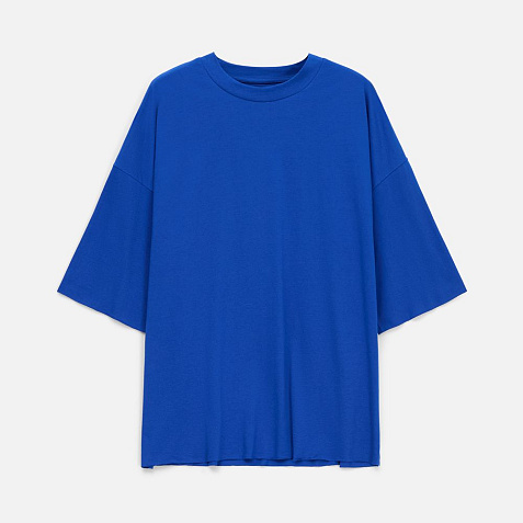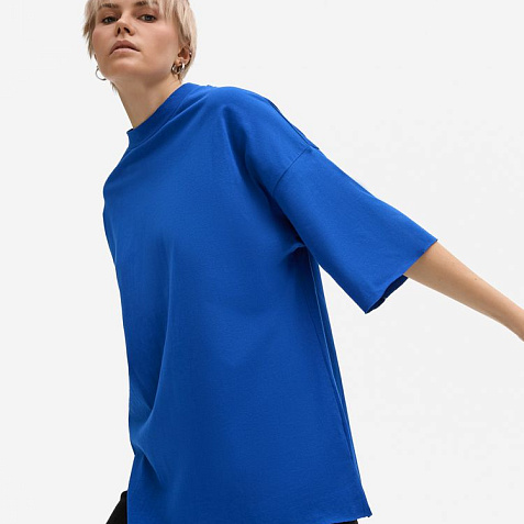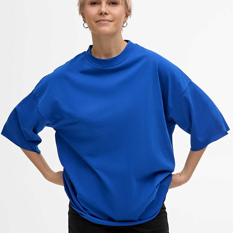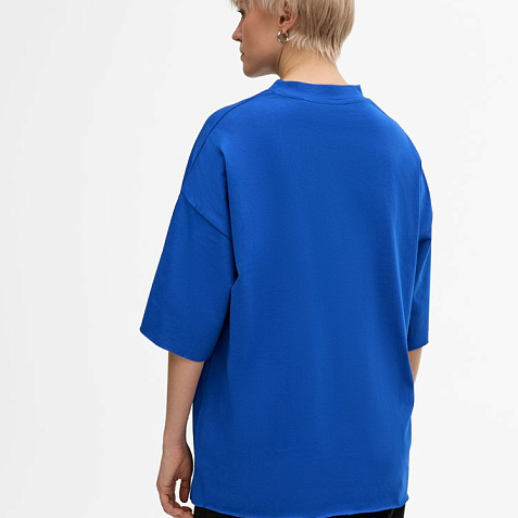 Футболка унисекс свободного кроя со спущенным плечом.