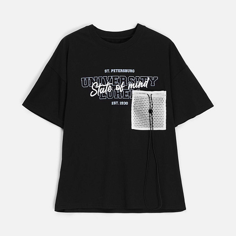 Футболка унисекс прямого кроя со спущенным плечом.