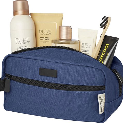 Косметичка из переработанного холста, сертифицированного по стандарту GRS, с подкладкой из переработанного РЕТ-пластика. Имеет передний карман на молнии и одно главное отделение на молнии с карманами для организации, а также удобную лямку. Декоративная металлическая пластина может придать логотипу сияние благодаря утонченному матовому покрытию. Емкость: 3,5 литр.
