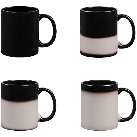 Кружка-хамелеон обладает интересным эффектом: стоит налить горячую воду, и ее цвет поменяется с черного на белый.