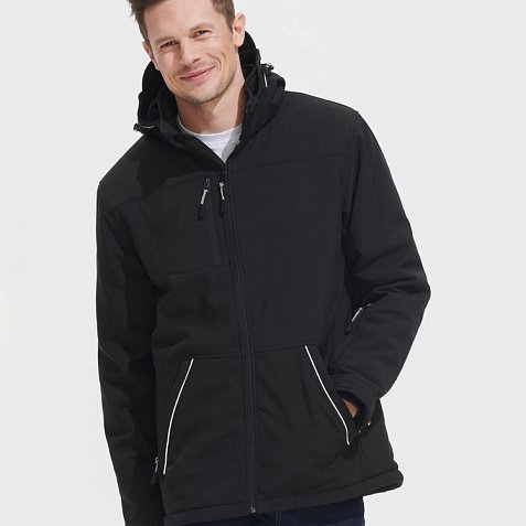 Куртка из материала Softshell. Водостойкость: 8000 мм, паропроницаемость: 1000 г/м² · 24 часа.