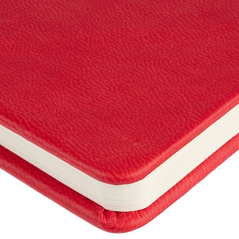 Твердая обложка из материала Latte, красный, ляссе в цвет обложки.