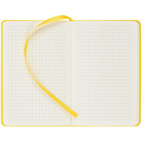 Твердая обложки из материала Latte, желтый, ляссе в цвет обложки.