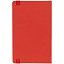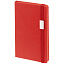 Блокнот в твердой обложке, выполнен из материала Soft Touch Ultra, красный РР, дополнен резинкой и ляссе в цвет обложки.
